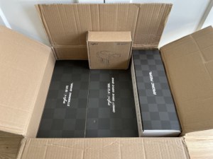 Zwei Tage nach meiner Bestellung bei Amazon.de kam das ziemlich schwere Paket schon bei mir an. In diesem befanden sich vier sauber kartonierte Packungen für die Wheel Base, das Lenkrad, die Pedale und die Tischklemme. In unserem Unboxing könnte ihr euch den Inhalt des Pakets genauer anschauen.