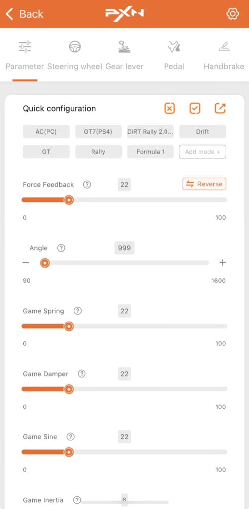 Besonders löblich ist die Steuerung per PXN Wheel-App auf dem Smartphone via Bluetooth. Hier kann man in wenigen Schritten z.B. am Force Feedback schrauben. Der Wermutstropfen: Die App ist noch nicht ausgereift, zeigt in der englischen Sprache teilweise noch chinesische Schriftzeichen an und hängt sich auf, wenn man die Farben des LED-Streifens ändern möchten.